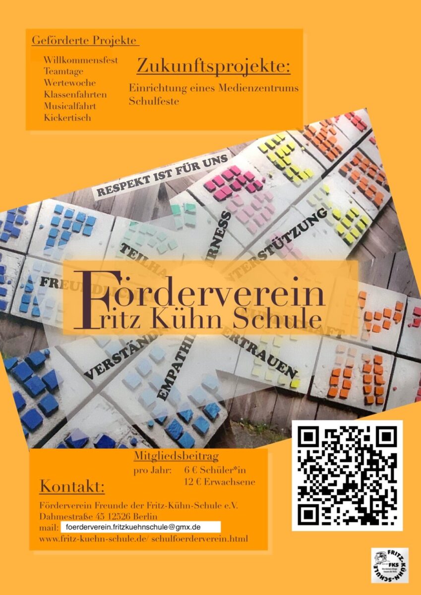 Dabei versuchen wir in enger Zusammenarbeit mit der Schule immer da anzusetzen, wo die öffentlichen Mittel und Kapazitäten begrenzt sind. Für diese Arbeit im Bereich Öffentlichkeit, Eltern und Schule bitten wir Sie um Unterstützung. Sollten Sie Interesse haben, dem Schulförderverein beizutreten, können Sie sich nachfolgend den Antrag auf Beitritt downloaden. Für Fragen stehen wir Ihnen gern unter foerderverein.fritzkuehnschule@gmx.de zur Verfügung.
